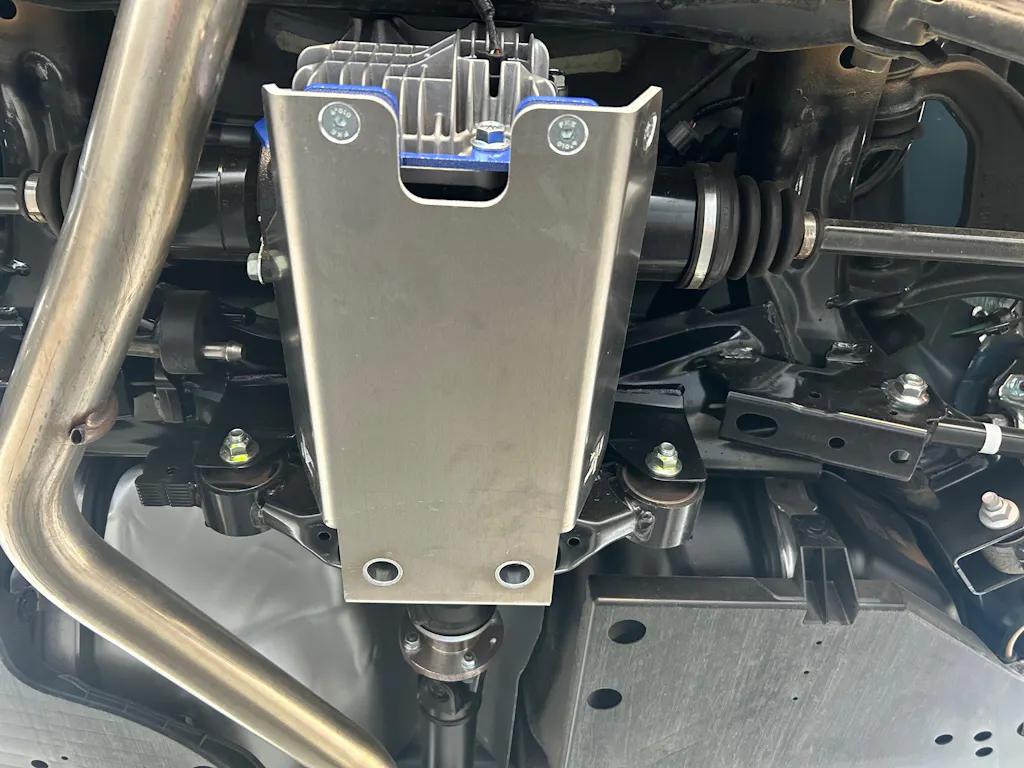 The RalliTEK Differential Rear Skid Plate for the 2024-2026 Subaru Crosstrek Wilderness will protect your rear diff from hazards off-road, such as rough rocks and trail debris. The skid plate is made from 3/16” aluminum for outstanding strength while minimizing weight. The angled front and side lips prevent the plate from getting caught on rocks or other obstacles. The driver’s side of the skid plate is designed for maximum exhaust clearance.