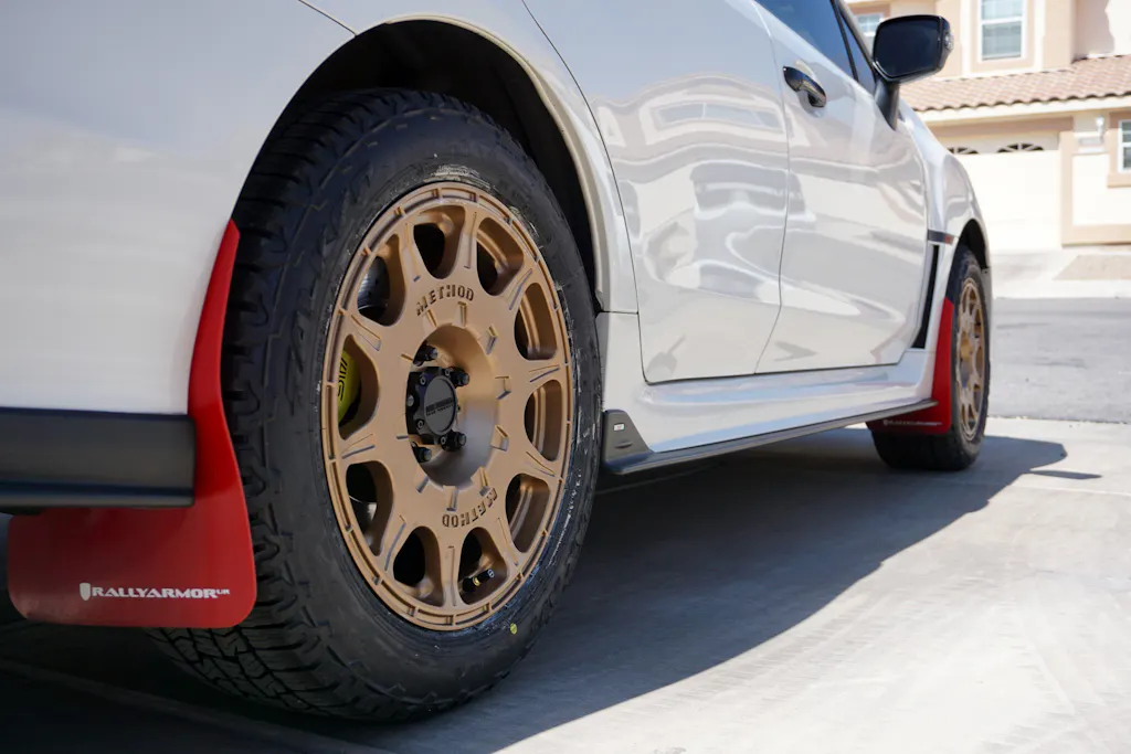 I paired this kit with Bronze Method MR502 17x8+38 wheels and Falken Wildpeak A/T Trail 225/55R17 tires. Everything clears, and I have minimal rubbing at full steering lock.