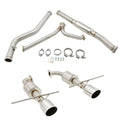 The catback system includes a midpipe and an axleback exhaust for a complete package ready for bolt-up installation to your vehicle with no cutting or welding required, a definite perk!