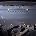 Designed to maintain factory airflow and cooling performance, featuring vents and mounts for factory ducting for airflow to the turbocharger and power steering motor.