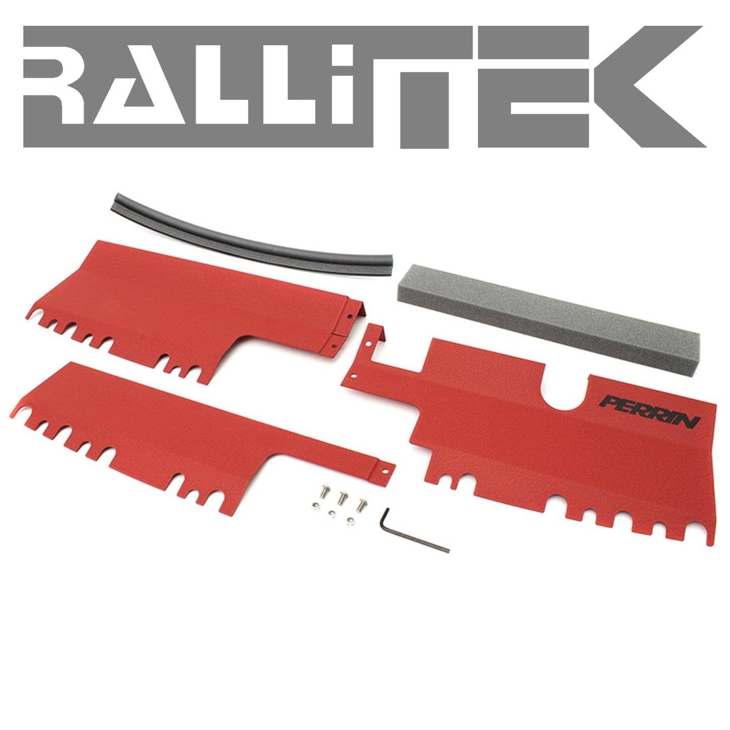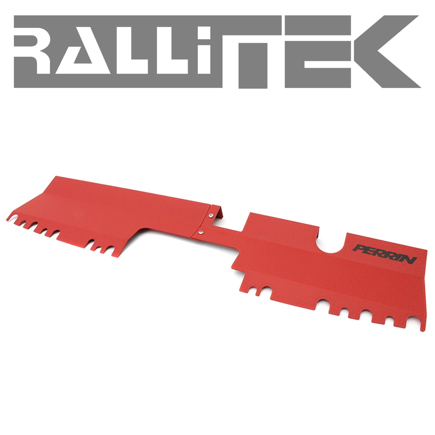 The PERRIN Performance Radiator Shroud caps the top of the radiator for a sleek new look and forces all available airflow through the core. This lowers operating temperature and increases power. Available in Black or Red powdercoated aluminum with the PERRIN logo printed on top.