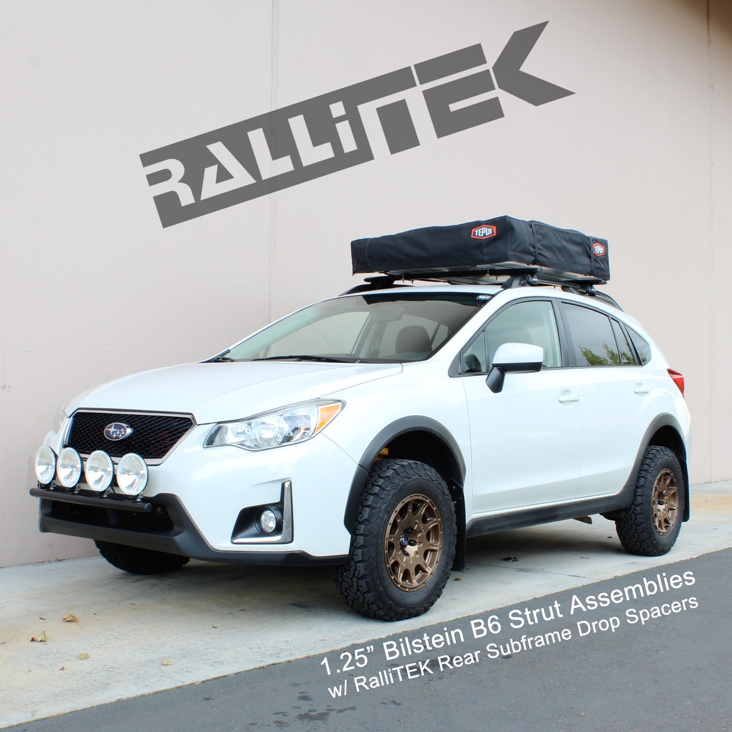RalliTEK Springs and Bilstein B6 Shocks are the ultimate duo to take the Subaru off-road capabilities to new levels. When we set out to develop a suspension kit, we wanted to create a product that dominates anything else on the market.
