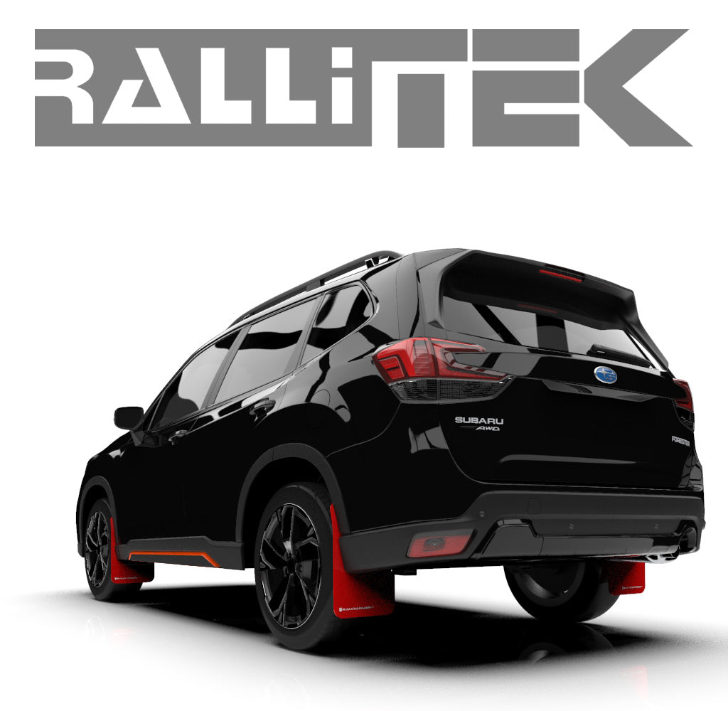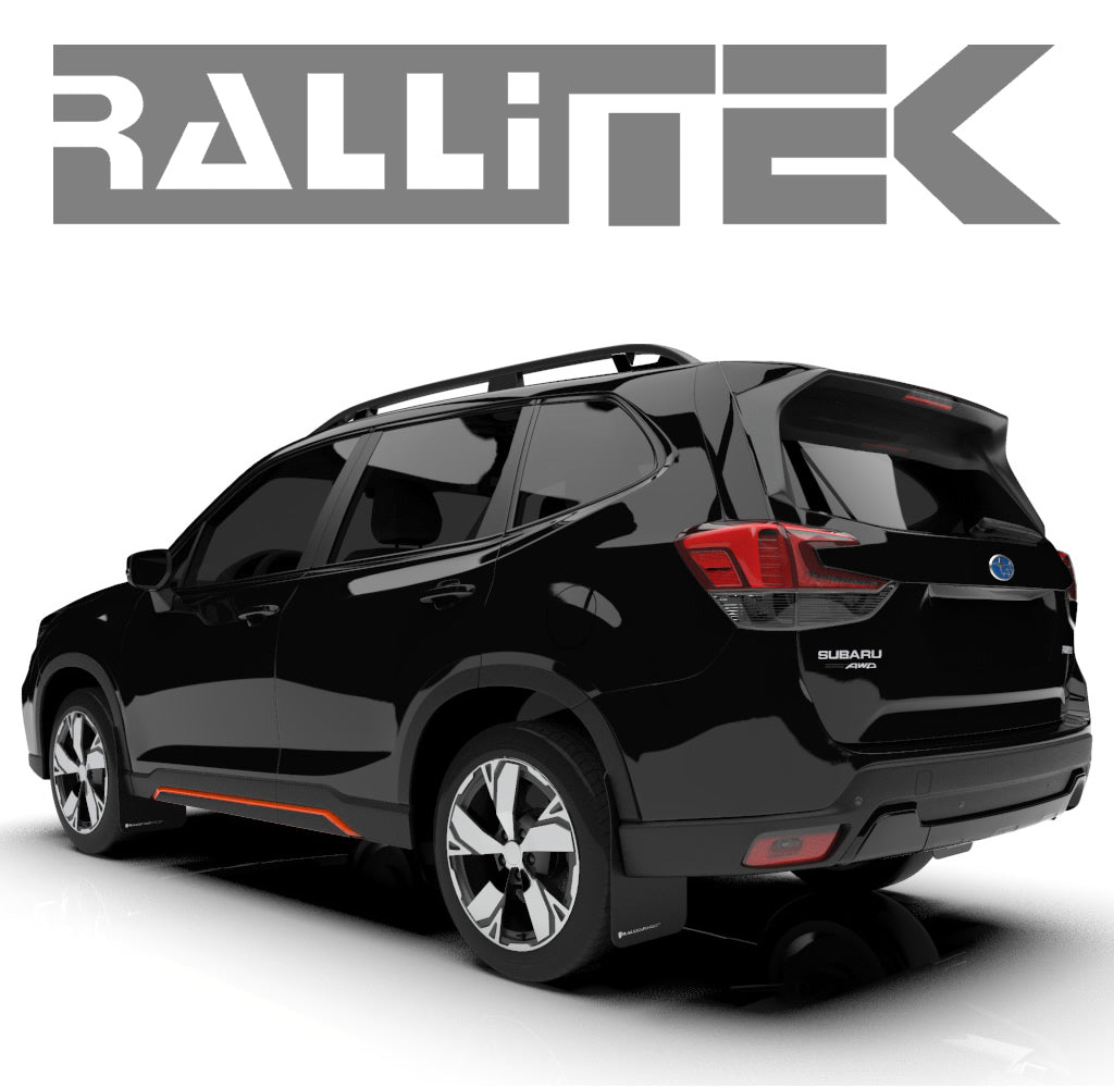 The 2019 Subaru Forester sport utility stalwart brings AWD on all-terrains to active lifestyle owners on an updated platform. Foresters assuredly navigate unrelenting weather and windy road conditions but what about the downsides to those spirited, maverick crisscrosses on muddied, uneven and craggy courses? Nicks, chips and paint damage invite premature rust and wear on new and aging vehicles so way back when the Forester was the little SUV that could in ’97, Rally Armor saw the need for flexible, hale and hearty, full-coverage poly-UR-ethane mud flaps to provide impassioned Subaru owners the max level of protection the market could deliver.