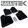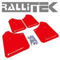 Each set includes four mud flaps for each corner of your vehicle with rust proof stainless steel and plastic mounting hardware. No drilling required. Simply bolt on using supplied hardware and easy to follow video and instructions. These rally mud flaps are the preferred choice for lowered vehicles or for use in extreme conditions