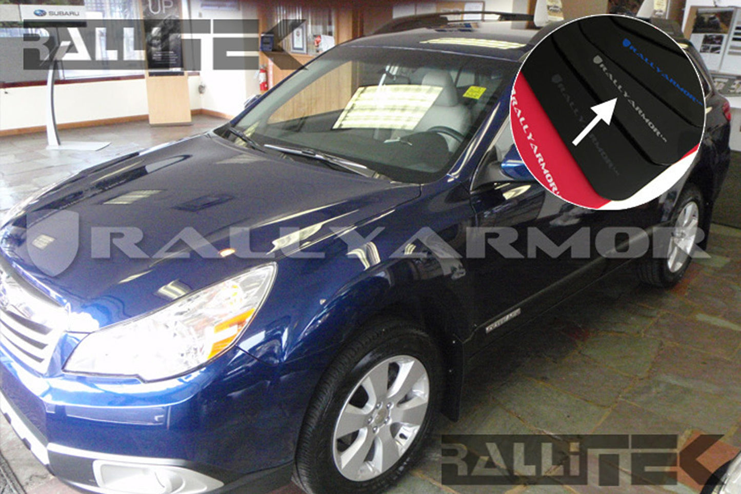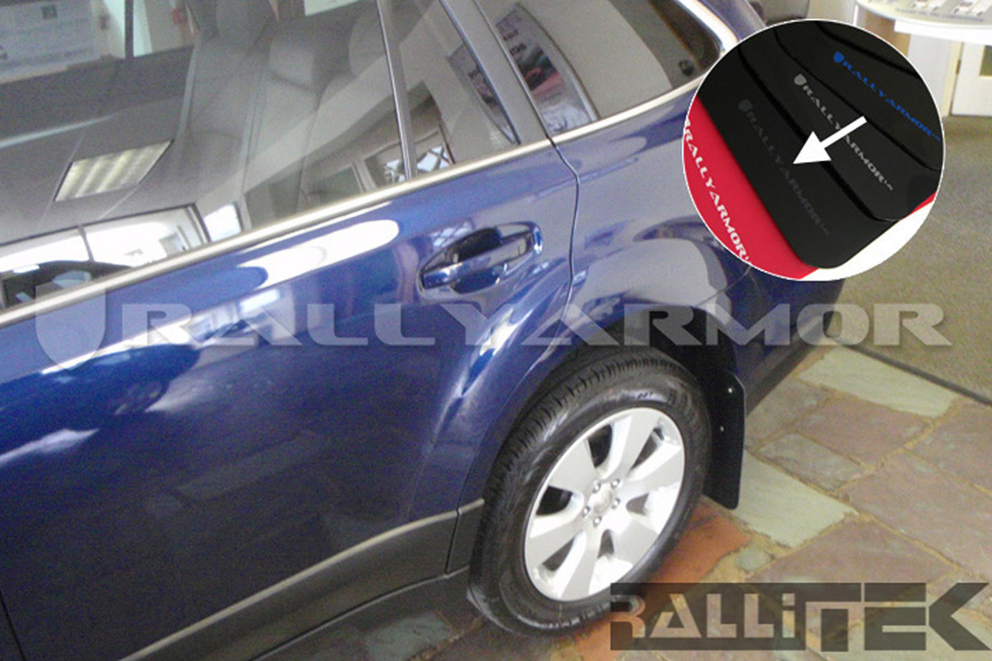 The URs are recommended for Subaru Outback owners not only interested in 4 corner protection against road debris but also value inherent flexibility and long wearing durability in a mud flap. From common paint damaging culprits such as salt, mud, gravel, tar and grime, Rally Armor mud flaps are designed to guard a vehicle's finish from unnecessary premature deterioration. Reduce chips, abrasions and unsightly dirt build up on the body panels and fender wells while maintaining optimal shock resistance and material resiliency. This UR mud flap application is a direct fitment for the 2010+ Subaru Outback.